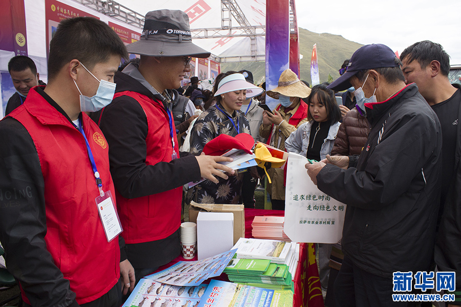 9月23日,工作人員現(xiàn)場發(fā)放農(nóng)牧業(yè)科技知識宣傳冊。新華網(wǎng) 達(dá)次 攝