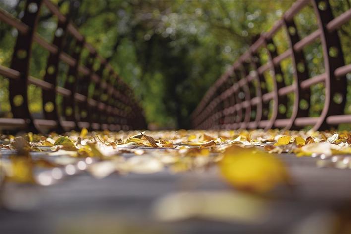 陽光溫暖地包裹著大地,穿過草木,穿過人群,在地上折射出好看的光影。樹木一排排整齊站立著,樹葉時不時隨風(fēng)飄落,落在地面,鋪作一地金色的地毯,行人走過,發(fā)出“沙沙”的聲響,伴著人們的說笑聲,格外動聽美妙。