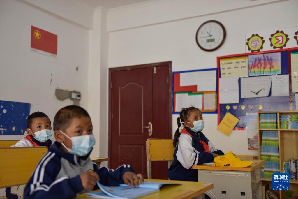 學(xué)生在楚魯松杰鄉(xiāng)教學(xué)點的教室里上課(2021年9月19日攝)。新華社記者 格桑朗杰 攝