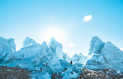 普瑪江塘邊境派出所移民管理警察巡邏路線上的崗布冰川。新華社記者 孫非攝