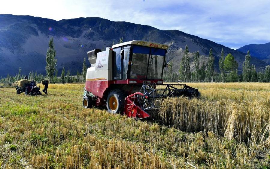 山南市扎囊縣松卡居委會的居民在收割青稞(2019年8月29日攝)。新華社記者 張汝鋒 攝