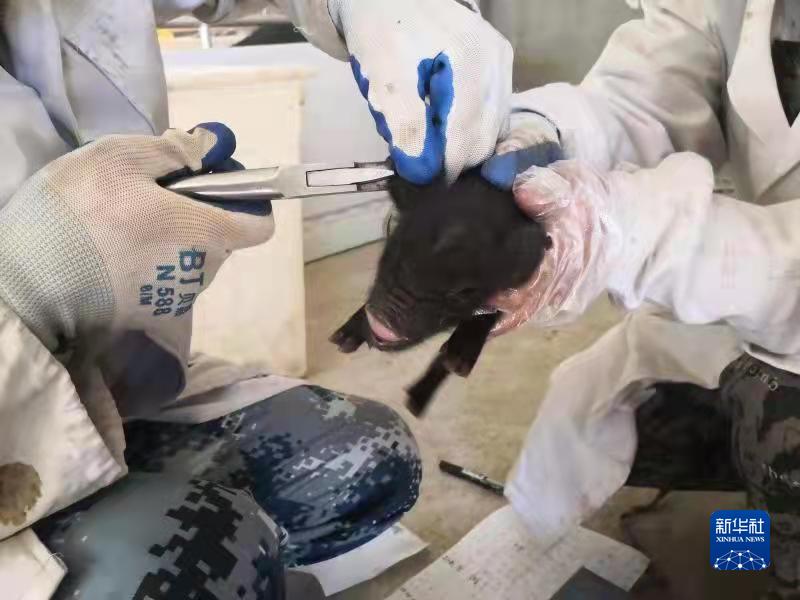 圖為工作人員給仔豬打耳缺編號(hào)。(受訪(fǎng)者供圖)