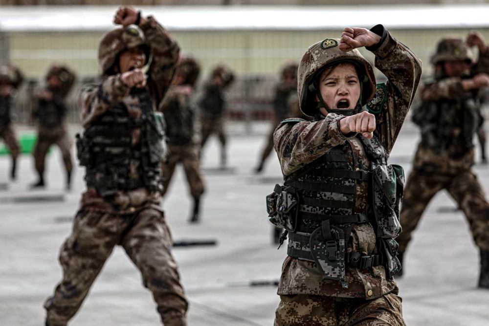 女兵正在進行體能訓練。 王述東攝