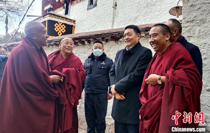 1月28日,調研組一行先后來到哲蚌寺、城關區(qū)雪堆白文教集團、城關區(qū)河壩林社區(qū)、色拉寺,看望慰問基層統戰(zhàn)干部、寺管會干部、駐寺派出所干警、消防和部隊官兵、寺廟僧人以及民營經濟人士等,并以現場察看、聽取匯報、座談交流的形式,詳細了解寺廟管理、僧尼教育、維護穩(wěn)定、消防安全和民族團結進步創(chuàng)建等方面的工作。