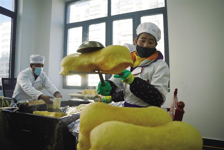為了保證“德卡”與“卡賽”的品質,恩惠苑社區(qū)還提前聯(lián)系拉薩市墨竹工卡縣訂購面粉與食用油,確保原材料的安全與口感?!盀榱嗽黾愉N量,我們提前對接了一些社區(qū)居委會和商戶,并低價對內銷售,讓我們社區(qū)的搬遷群眾也能夠低價購買到年貨?!贝稳拾椭檎f。