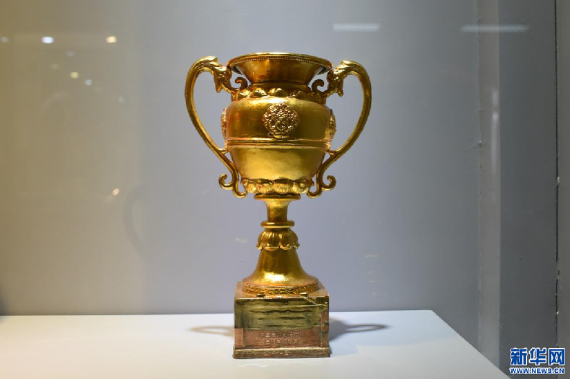 圖為白納鍛銅技藝代表性傳承人羅布占堆的手工作品《獎杯》(2月25日攝)。新華網(wǎng) 旦增努布 攝