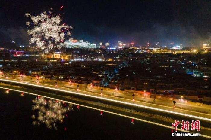 3月1日是藏歷12月29日,按照藏族傳統(tǒng)習俗,當天晚上藏族家家戶戶吃“古突”(一種面食,包有不同寓意的各種餡料),迎接藏歷新年。圖為“古突”之夜,西藏拉薩布達拉宮周邊煙花璀璨。 中新社記者 江飛波 攝