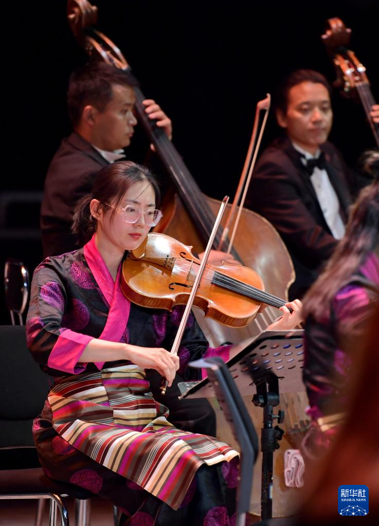 交響樂《古格幻想》在藏戲藝術(shù)中心演出(4月3日攝)。新華社記者 張汝鋒 攝
