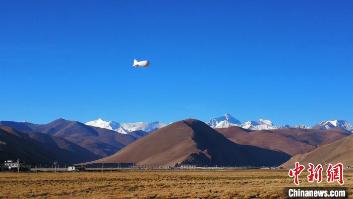 珠穆朗瑪峰和洛子峰前的“極目一號”III型浮空艇?!≈锌圃?供圖
