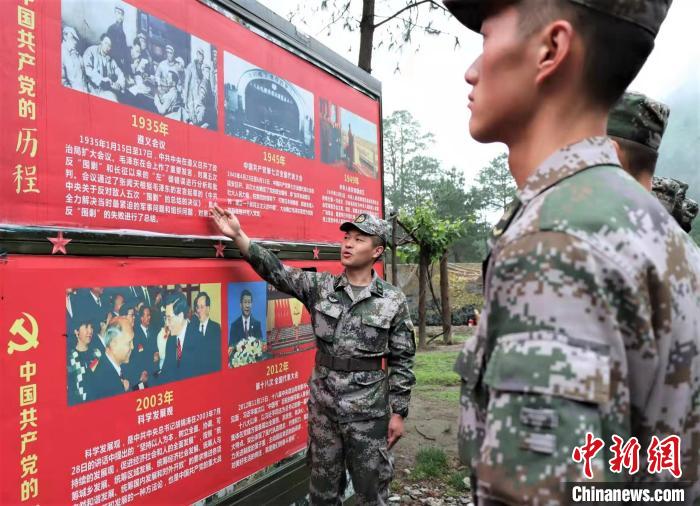 圖為官兵介紹中國(guó)共產(chǎn)黨黨史?!『聜?攝