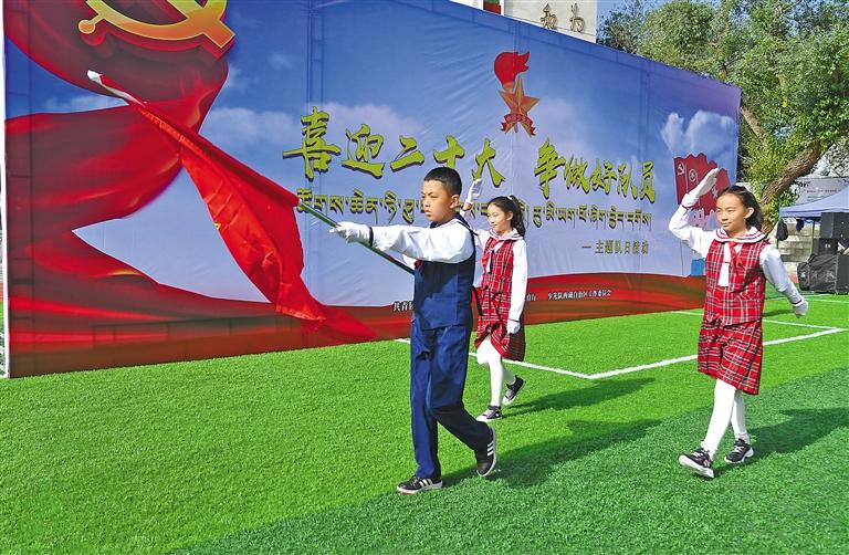 拉薩市第一小學舉行“喜迎二十大、爭做好隊員”少先隊員入隊儀式。記者 李 攝