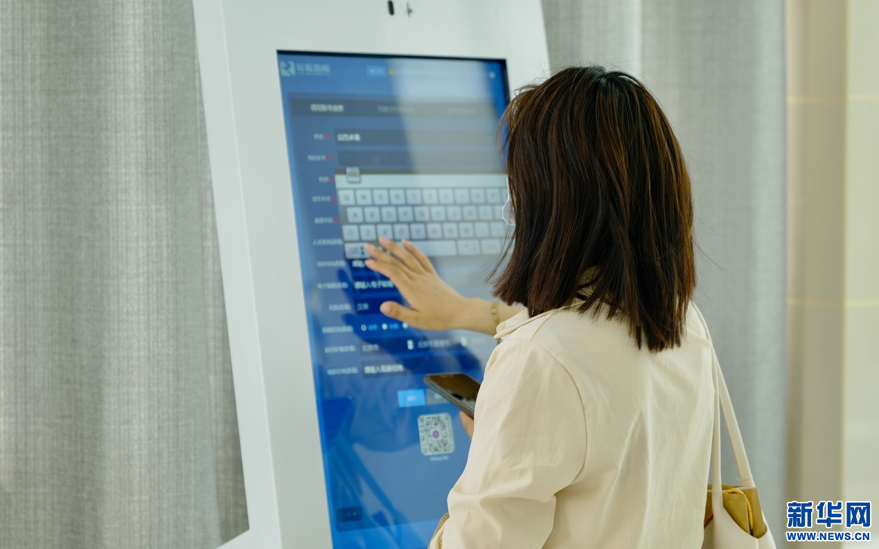 6月24日,應(yīng)聘者在使用自助查詢機(jī)填寫資料。新華網(wǎng) 柑丹鴦琦 攝