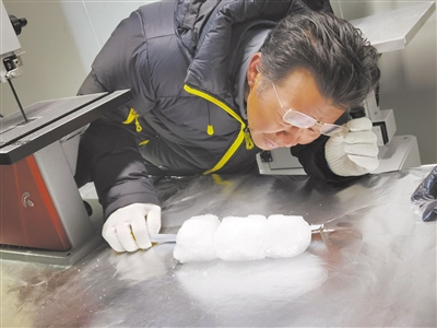 中國(guó)科學(xué)院青藏高原研究所研究員徐柏青在拉薩冰芯庫(kù)測(cè)量分析樣品受訪者供圖