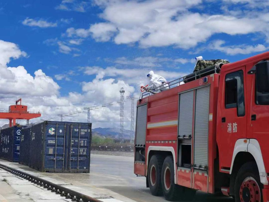 拉薩西站聯(lián)系堆龍德慶區(qū)乃瓊街道防疫部門組織堆龍消殺隊(duì),對(duì)拉薩西站東門區(qū)域、中風(fēng)險(xiǎn)區(qū)宏順裝卸宿舍樓內(nèi)及大門進(jìn)行專業(yè)、全面、系統(tǒng)性消殺;日喀則站聯(lián)系市疫情防控部門消殺組,對(duì)林瑞達(dá)裝卸隊(duì)院內(nèi)、貨運(yùn)職工、裝卸隊(duì)住宿樓進(jìn)行;那曲站聯(lián)系市消防部門對(duì)車站、站臺(tái)、貨場(chǎng)等重要場(chǎng)所進(jìn)行專業(yè)、全面、系統(tǒng)性消殺。