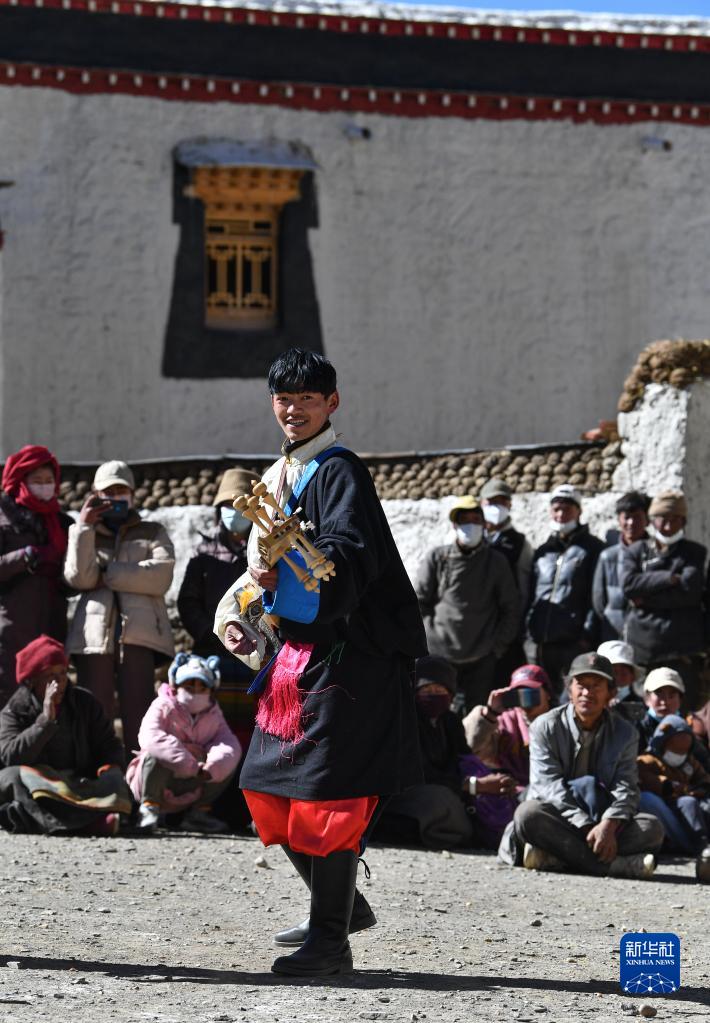 西藏日喀則市芒普鄉(xiāng)普村文藝演出隊在表演(1月21日攝)。新華社記者 晉美多吉 攝