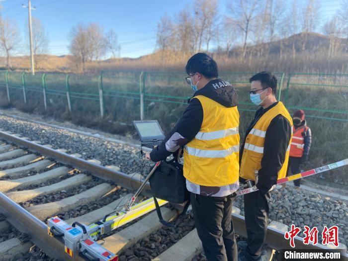 圖為“鋼軌醫(yī)生”對使用軌道檢查儀對線路進(jìn)行檢查。 黨敏嘉 攝