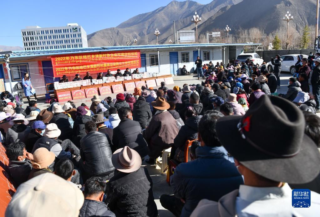 近日,西藏山南市乃東區(qū)滴新村舉行2022年產(chǎn)業(yè)分紅儀式。當日,村委會院子里坐滿了前來領(lǐng)取分紅的村民。