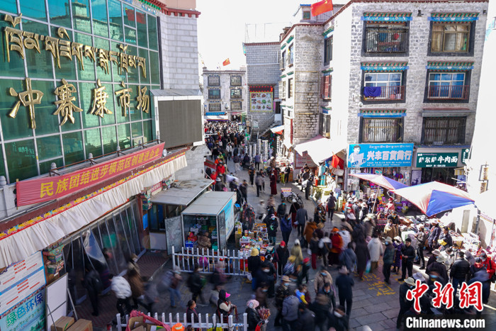 圖為2月13日,拉薩老城區(qū)沖賽康市場人流如織。中新社記者 江飛波 攝