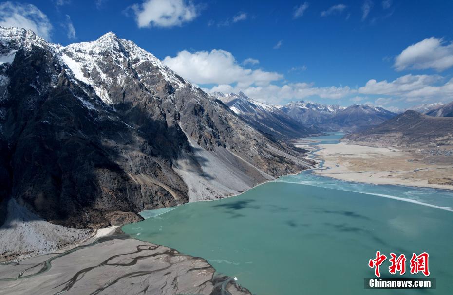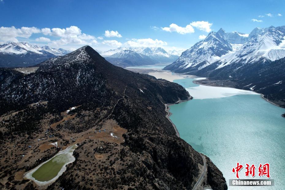 然烏湖位于西藏昌都市八宿縣,是山體滑坡或泥石流堵塞河道而形成的堰塞湖。時下,然烏湖半冰半水的湖面與雪山、藍天相互映襯,如畫一般,美不勝收。圖為2月16日,西藏昌都然烏湖。(無人機照片)