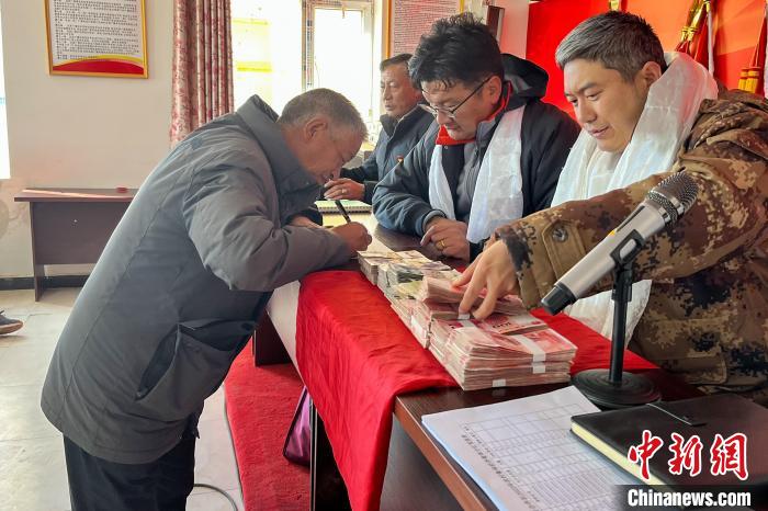 圖為2月19日,西藏那曲安多縣帕那鎮(zhèn)申格卡崗村牧民分紅。中國鐵路青藏集團有限公司 供圖