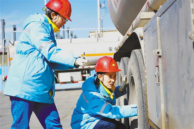 中國(guó)石油運(yùn)輸西藏分公司女員工在養(yǎng)護(hù)車輛。次仁平措 攝