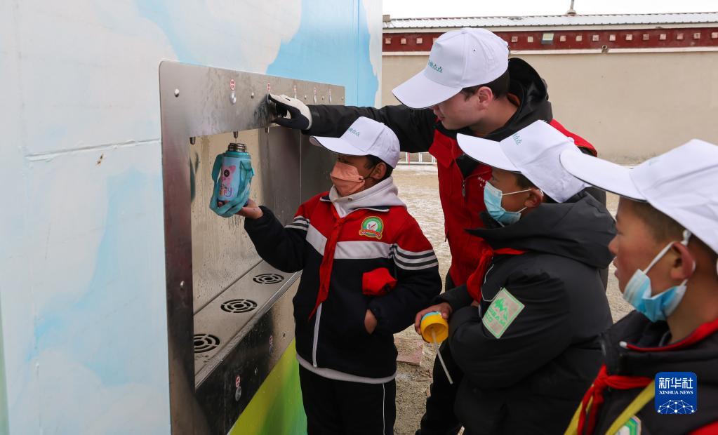 3月21日,那曲市色尼區(qū)香茂鄉(xiāng)小學(xué)的同學(xué)們?cè)谛聠⒂玫膬羲敬蛩P氯A社記者 姜帆 攝
