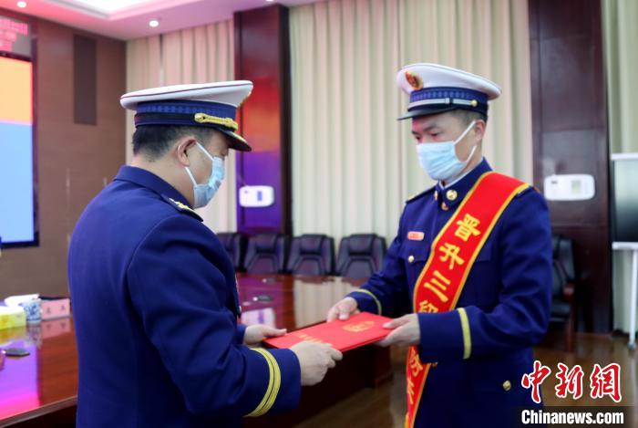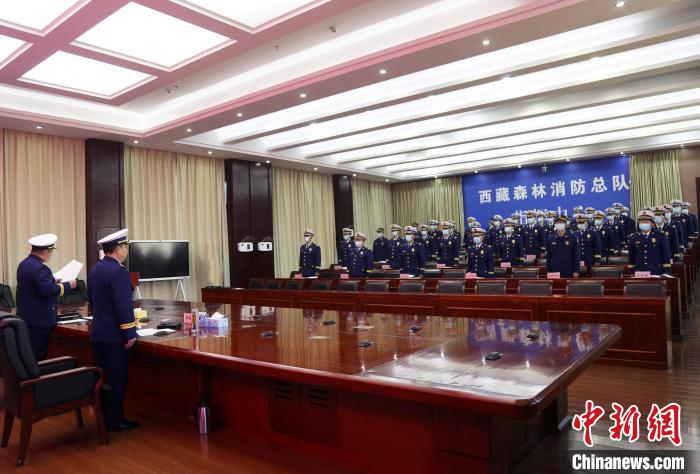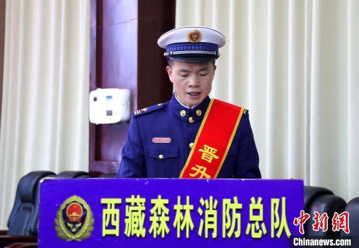 3月22日,頒發(fā)晉升命令狀。 西藏森林消防總隊(duì)供圖