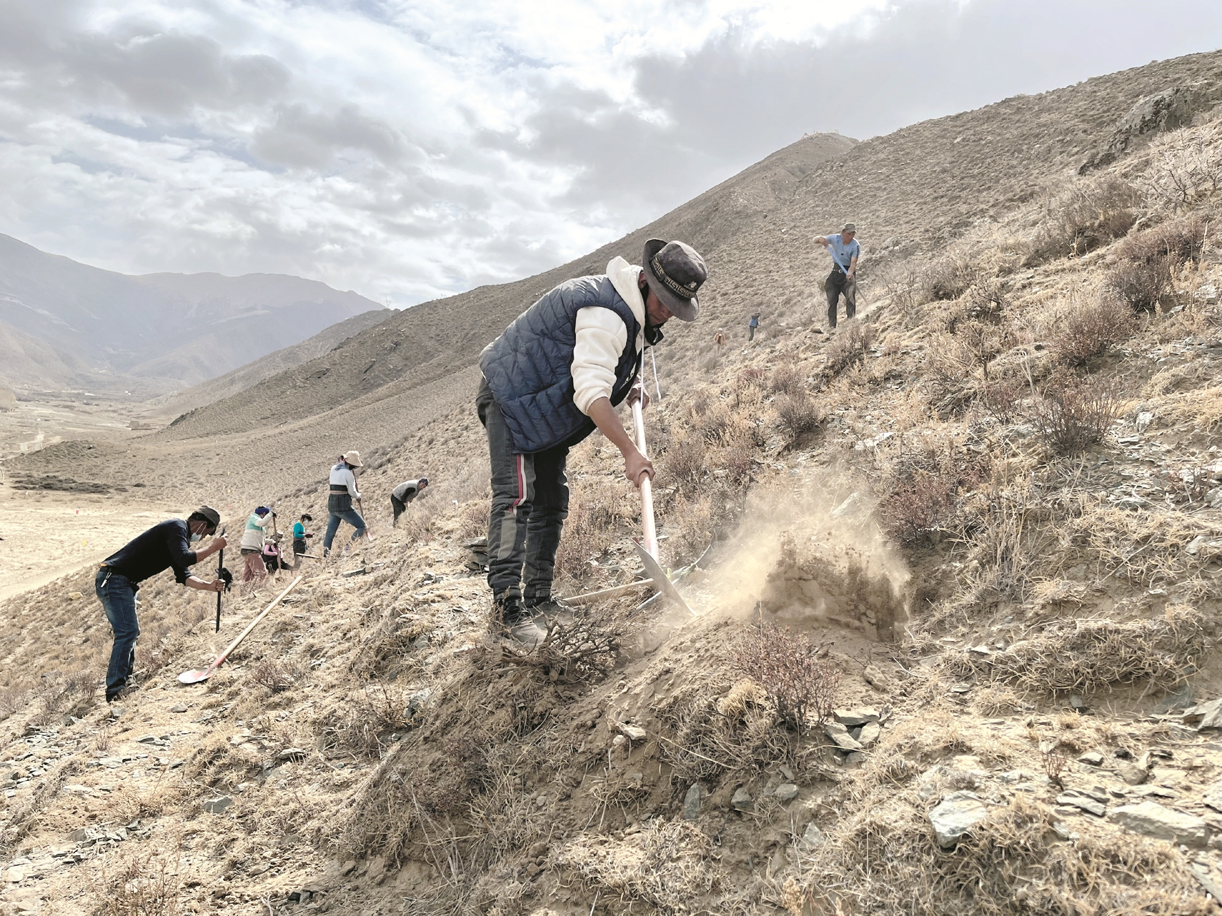 4月,正是一年春光好。記者來到曲水縣才納鄉(xiāng)才納村3-2號綠化造林項目點看到,工人們正在加緊挖坑、客土。該植樹點平均坡度在45度左右,有的地方甚至接近60度。在陡峭的坡面上挖坑、運樹、栽植需要花費大量的心血和體力。但不管山有多高、坡有多陡,按時節(jié)、高質(zhì)量地把樹苗種下的生態(tài)理念已經(jīng)在每一個植樹人心中落地生根。