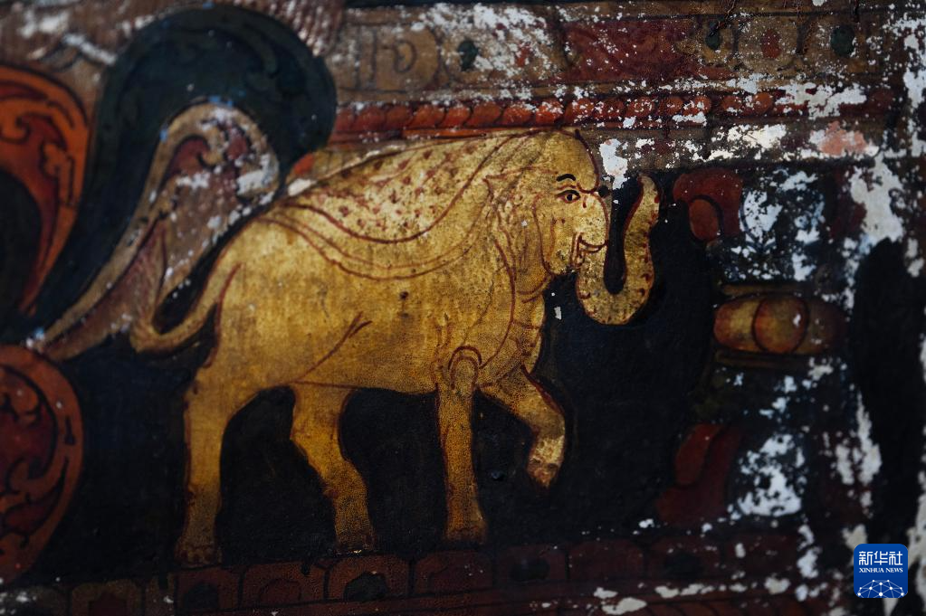 這是5月26日拍攝的皮央石窟壁畫中的大象像。新華社記者 費茂華 攝