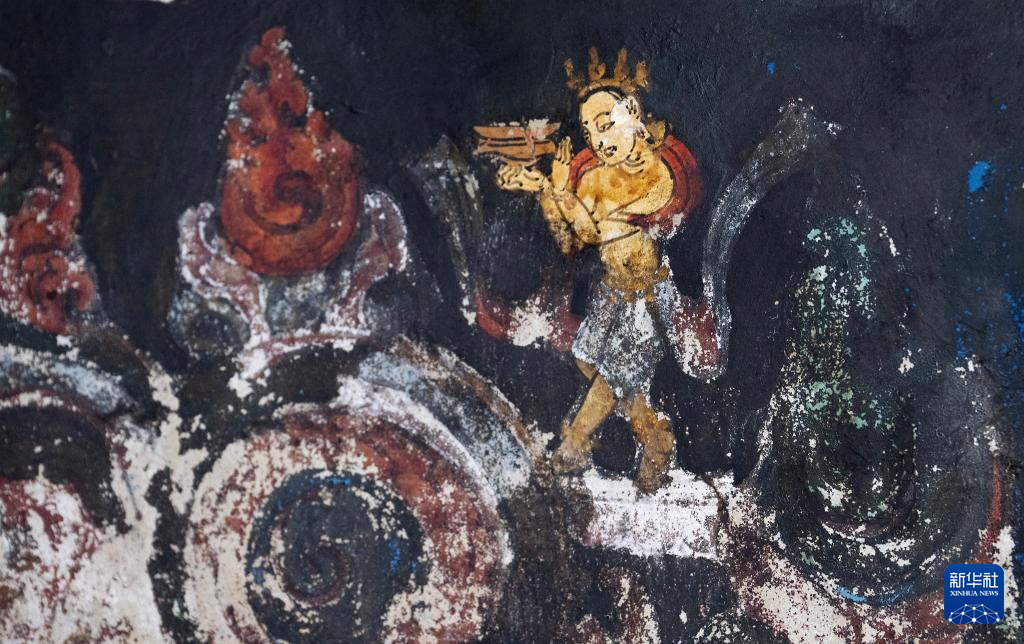 這是5月26日拍攝的皮央石窟壁畫中的人物造型。新華社記者 費茂華 攝