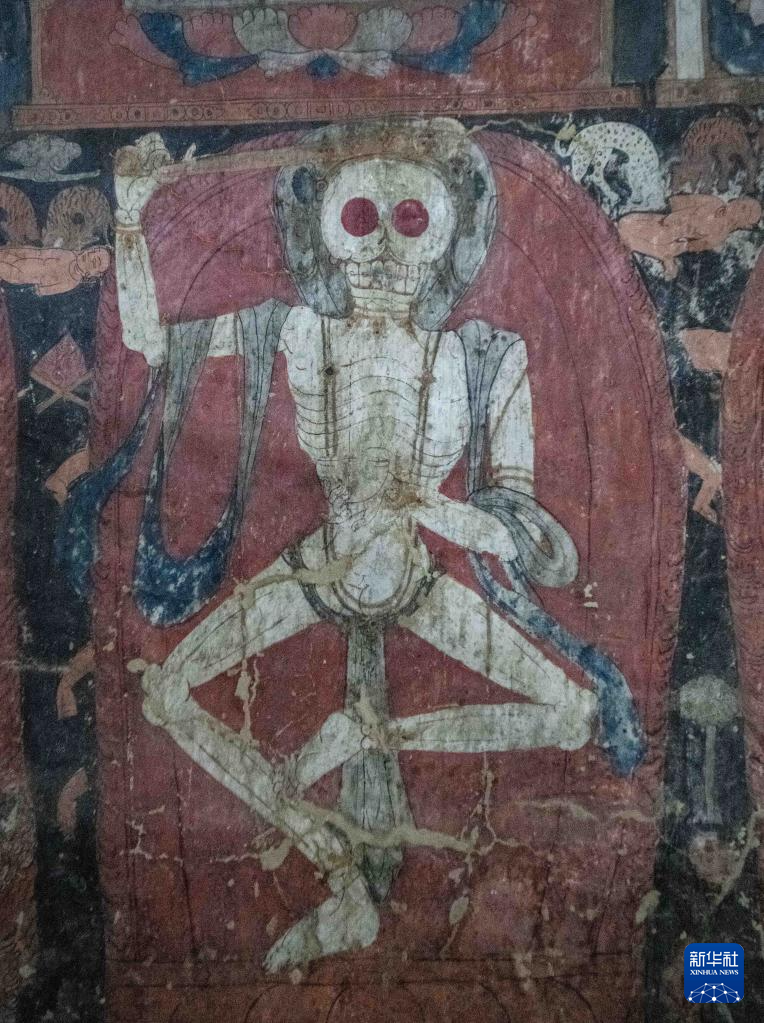 這是5月26日拍攝的皮央石窟壁畫中的骷髏造型。新華社記者 晉美多吉 攝