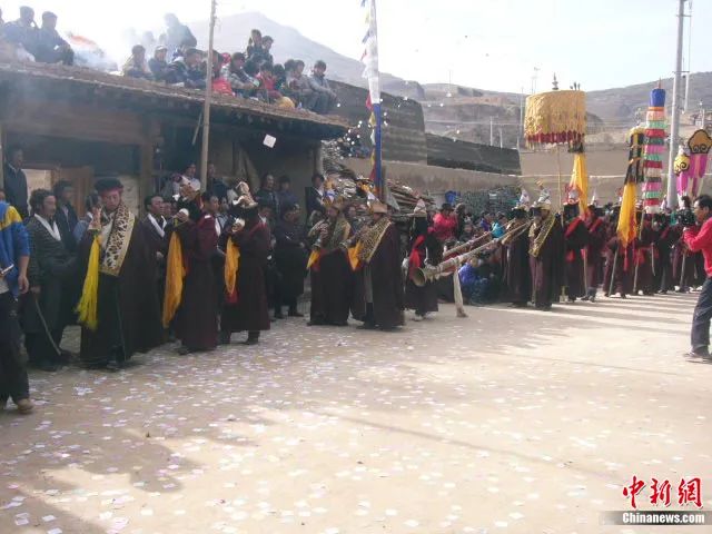 2、舞蹈在村莊廟宇外的一個大廣場上進行,舞者主要是僧侶。