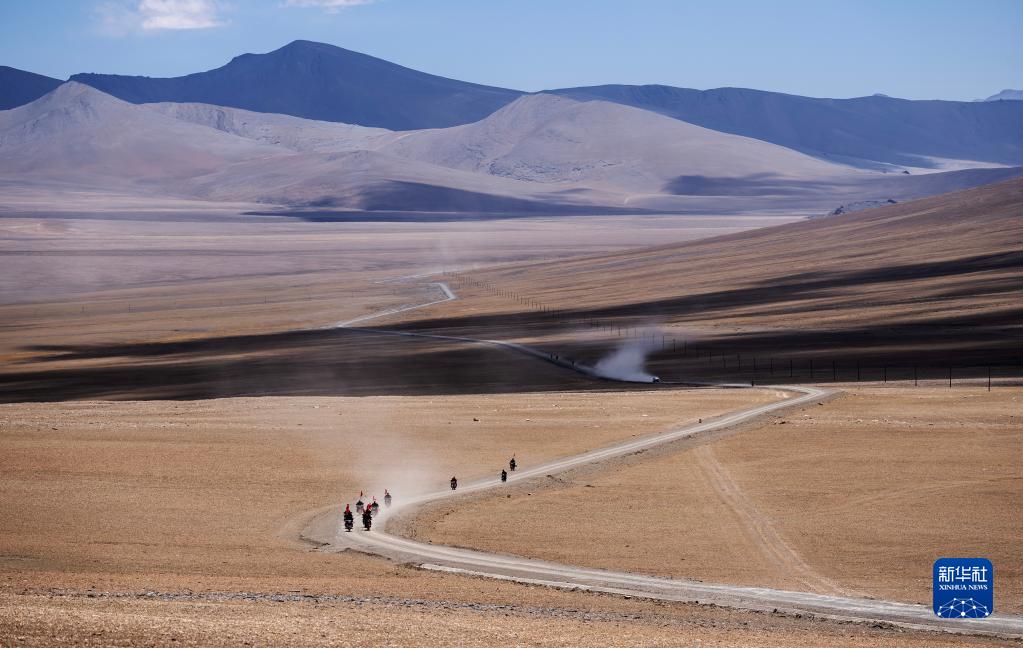 車輪滾滾,黃沙漫漫,一隊(duì)摩托車風(fēng)馳電掣般駛來(lái)……這里是平均海拔超過5000米的西藏日喀則市薩嘎縣昌果鄉(xiāng),雖然已是初夏時(shí)節(jié),但依然寒風(fēng)刺骨。50歲的昌果護(hù)邊聯(lián)防隊(duì)隊(duì)長(zhǎng)石角帶領(lǐng)18名隊(duì)員,騎著摩托車在邊境線巡邏。