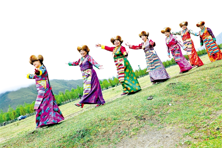 堆諧是西藏民間歌舞發(fā)展到較高層次、集歌舞樂為一體的珍貴傳統(tǒng)文化藝術(shù)遺產(chǎn),因其優(yōu)雅舒緩且隨時(shí)隨地都能唱跳的特點(diǎn),在西藏這片廣袤的土地上生生不息,代代相傳。2008年,堆諧入選第二批國(guó)家級(jí)非物質(zhì)文化遺產(chǎn)名錄項(xiàng)目。