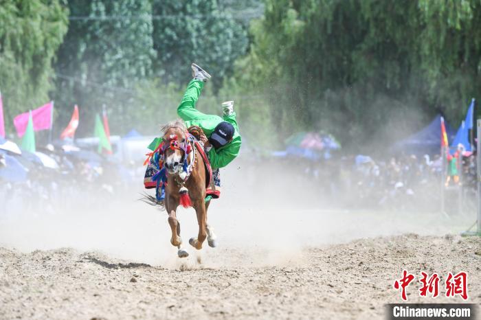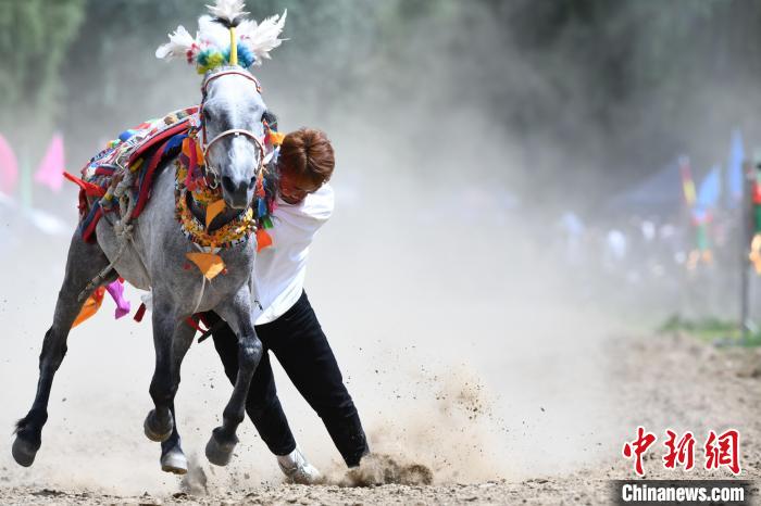 7月24日,在西藏自治區(qū)拉薩市曲水縣曲水鎮(zhèn)茶巴朗村村民身著節(jié)日盛裝進(jìn)行賽馬和馬術(shù)表演歡度“望果節(jié)”。“望果節(jié)”已有1500多年的歷史,是國(guó)家級(jí)非物質(zhì)文化遺產(chǎn),流行于西藏拉薩、日喀則、山南等地。