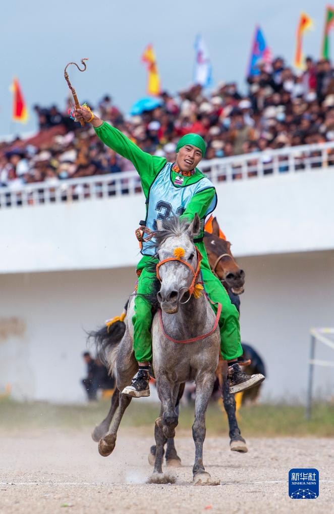 8月11日,索朗亞培在走馬比賽的決賽中沖刺。新華社發(fā)(旦增努布攝)
