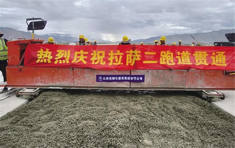 近日,隨著施工現(xiàn)場(chǎng)攤鋪機(jī)轟鳴聲的戛然而止,拉薩貢嘎機(jī)場(chǎng)新建第二跑道最后一倉混凝土完成澆筑,標(biāo)志著拉薩貢嘎機(jī)場(chǎng)新建第二跑道順利完成全線貫通。