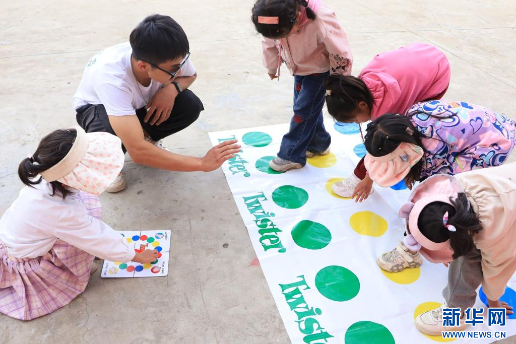 中國(guó)農(nóng)業(yè)大學(xué)峰云社人文科考隊(duì)隊(duì)員帶領(lǐng)孩子們進(jìn)行課外活動(dòng)。新華社發(fā)