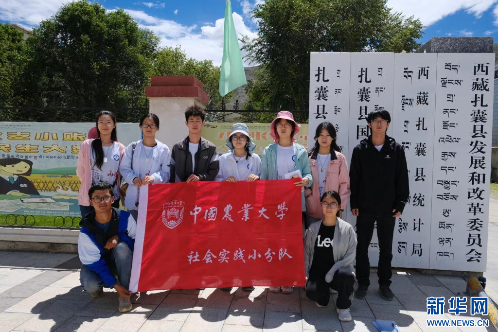 中國(guó)農(nóng)業(yè)大學(xué)峰云社人文科考隊(duì)隊(duì)員在西藏山南市扎囊縣合影留念。新華社發(fā)