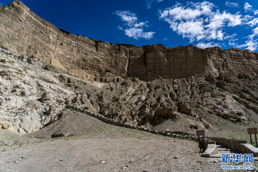 從遺址腳下一條蜿蜒的石頭路依山而建,一直延伸到洞窟門口?!斑@里以前沒有路,都是土坡。”阿旺米朗介紹,以前想要到洞窟參觀,都得手腳并用爬上去。1998年,他開始推動(dòng)修建山上的道路,號(hào)召東嘎村村民一起背著石頭上山,揮鋤挖土,用了幾年的時(shí)間才修成了如今的石頭路。