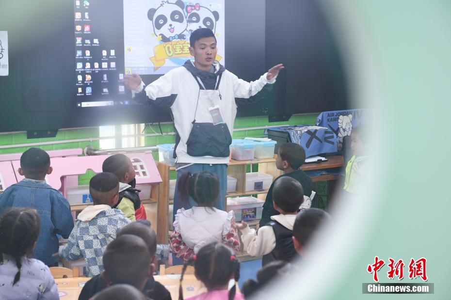 圖為那曲市第三幼兒園老師帶學生做游戲。貢嘎來松 攝
