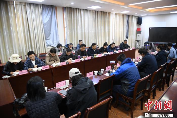 圖為那曲市教育局相關負責人與媒體記者展開座談交流會。貢嘎來松 攝
