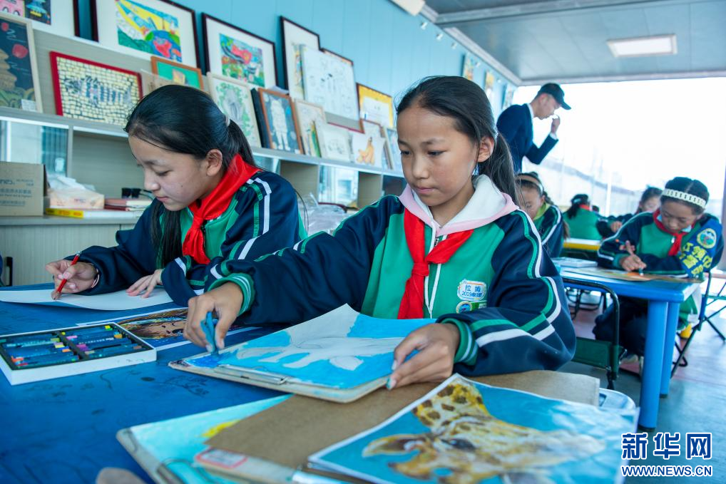 圖為那曲市第二小學學生在學習繪畫(9月5日攝)。新華網(wǎng) 旦增努布 攝