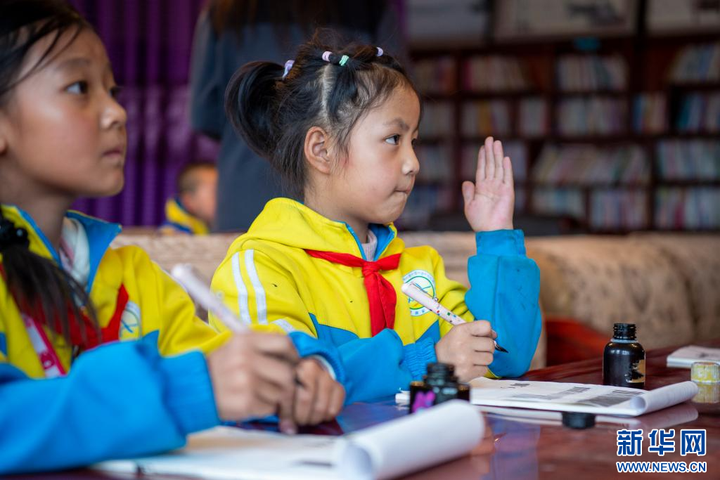 圖為索縣第一小學學生在學習藏文書法(9月7日攝)。新華網(wǎng) 旦增努布 攝