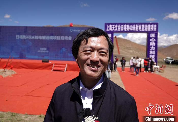 9月15日,中國科學(xué)院上海天文臺臺長沈志強在日喀則40米射電望遠鏡項目啟動會后,現(xiàn)場微笑接受媒體采訪。中新網(wǎng)記者 孫自法 攝