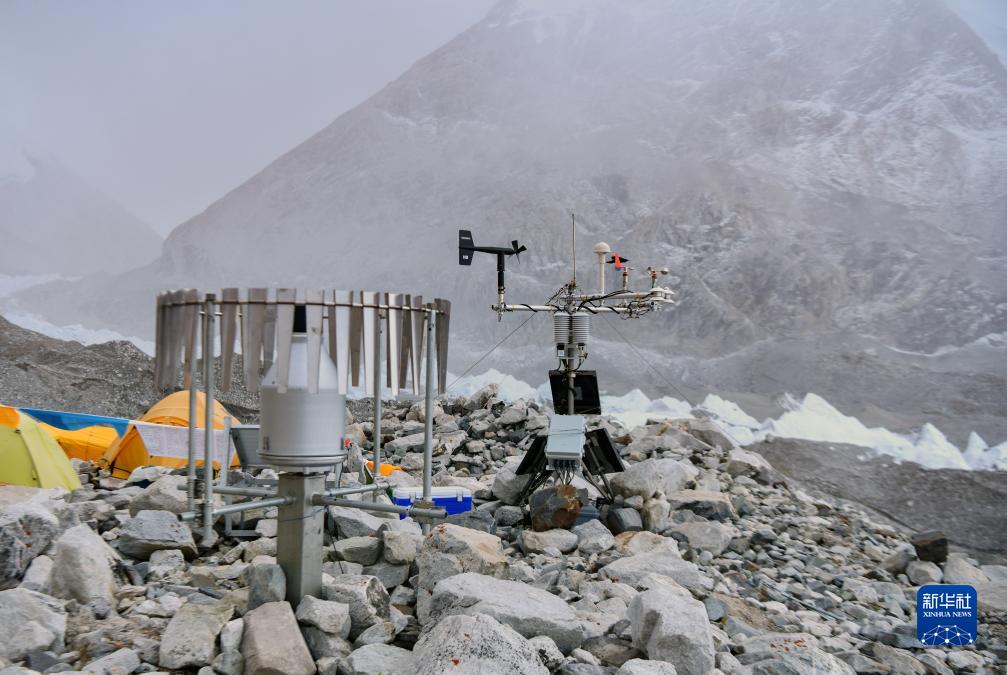 位于海拔5700米卓奧友峰前進(jìn)營(yíng)地的自動(dòng)氣象站(9月29日攝)。新華社記者 晉美多吉 攝