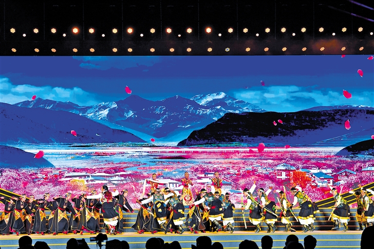 西藏自治區(qū)歌舞團(tuán)、林芝市民族藝術(shù)團(tuán)表演的開場(chǎng)歌舞《扎西德勒》。記者 洛?!z