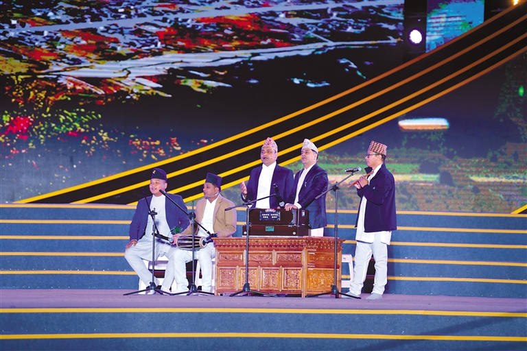尼泊爾博克拉市文藝演出團(tuán)表演的歌舞《歡迎您到博克拉》。記者 旦增西旦 攝