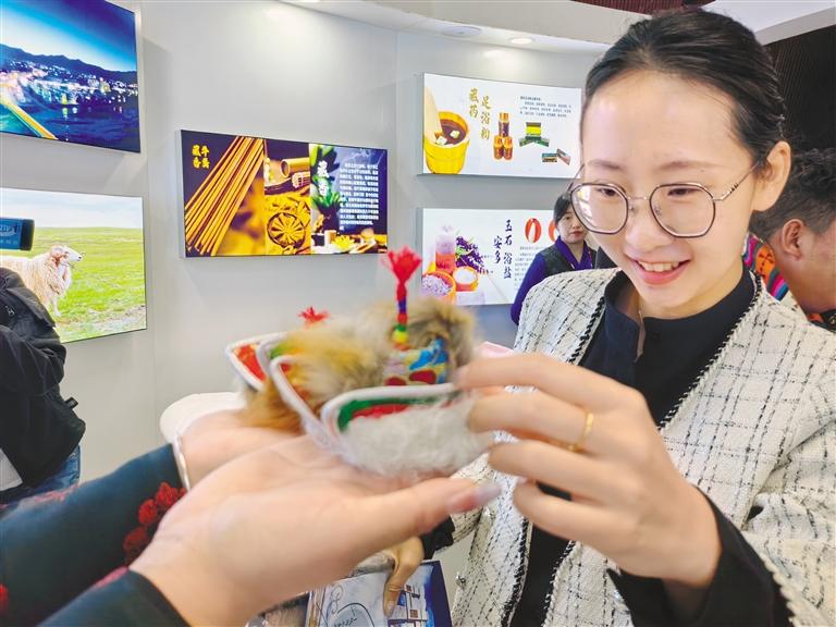 “這次畜產(chǎn)品展銷(xiāo)活動(dòng)上,我們主要銷(xiāo)售天線(xiàn)帽工藝品、玉石、羊毛圍巾、羊毛毯等,產(chǎn)品價(jià)格比較實(shí)惠,前來(lái)咨詢(xún)購(gòu)買(mǎi)的人也很多。展銷(xiāo)不到兩個(gè)小時(shí),就賣(mài)了1000多元?!卑捕嗫h措那湖文化傳播有限責(zé)任公司負(fù)責(zé)人貢布多吉的臉上充滿(mǎn)了喜悅。