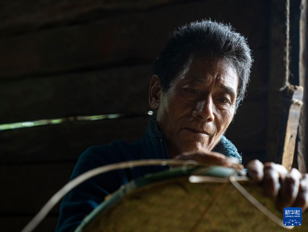 在西藏墨脫縣背崩鄉(xiāng)巴登村,一名村民在編織竹筐(10月11日攝)。新華社記者 孫非 攝
